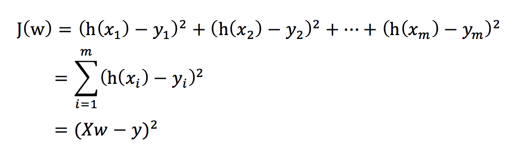 其中y是真实值矩阵,X是特征值矩阵,w是权重矩阵